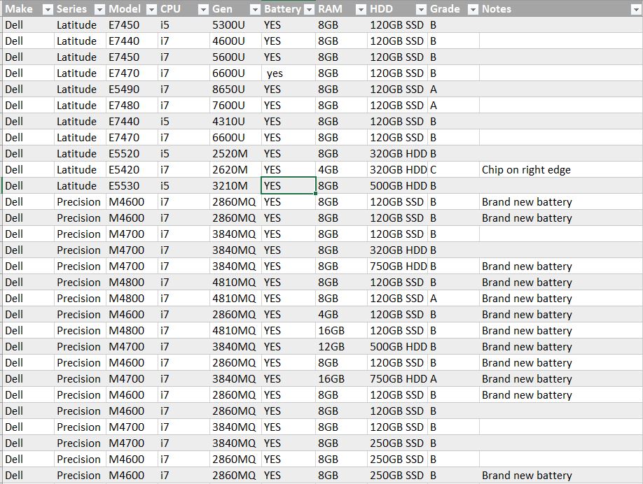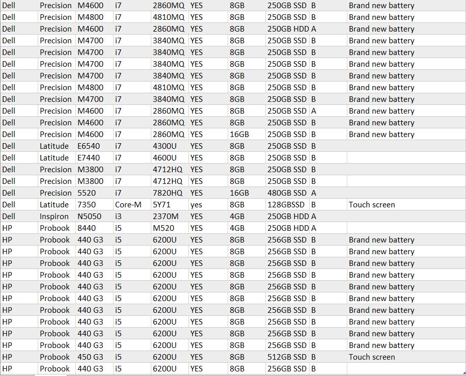 | Message: | hello. ailable for sale one lot of 60 laptops i-series, mostly core i7. please check the below sheet and contact at for more info Asking Price: $11,500 or best offer ![]() ![]() |